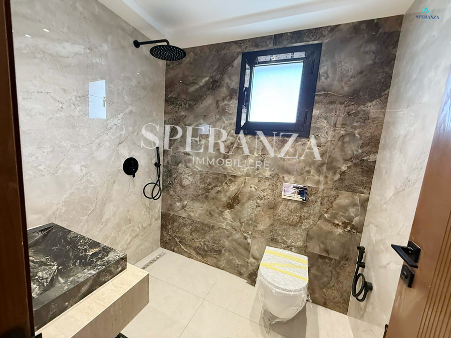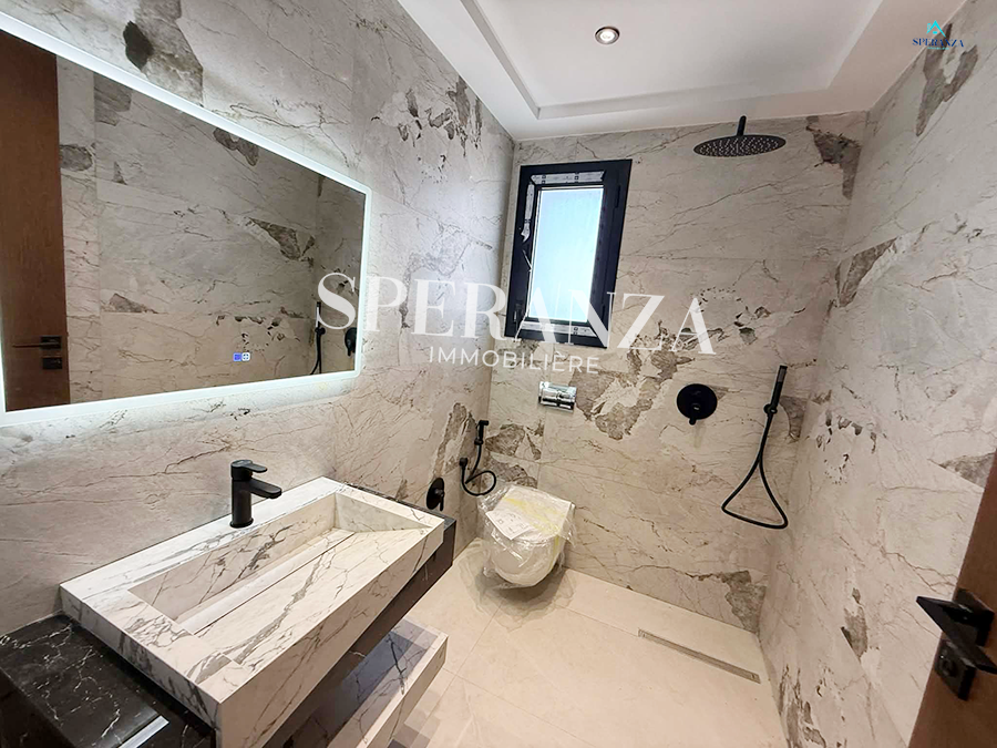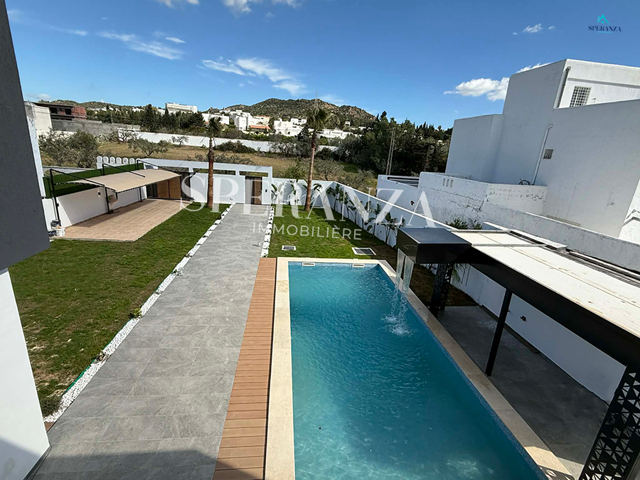 Speranza immobilière vous propose à la vente Cette villa style moderne situé à Hammamet Centre.L'entrée principale bénéficie d'un jardin gazonné qui offre plusieurs espaces, une piscine. Au rez de chausser se trouve un salon lumineux grâce à ses fenêtre qui offre une vue sur le piscine ,une cuisine aménagée avec des espaces de rangement ,une chambre,une salle d’eau pour les invités. Un escalier nous mène vers 1 er étage qui se compose une suite parentale avec terrasse vue de mer ,une salle d'eau ,deux chambres à coucher. Un abri de voiture.